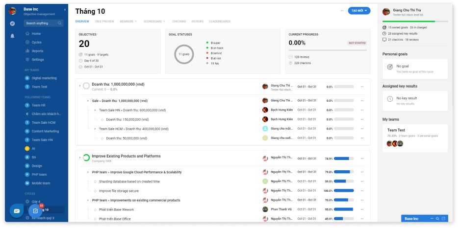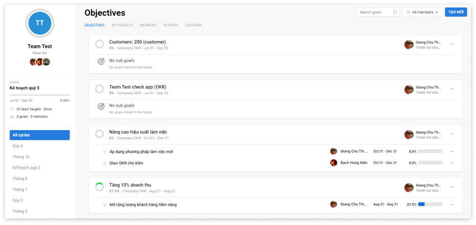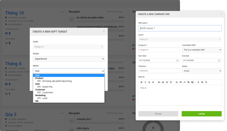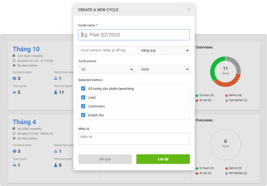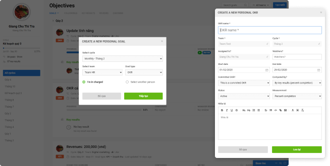 Tạo mục tiêu, chỉ số hiệu suất cho doanh nghiệp, nhóm, phòng ban