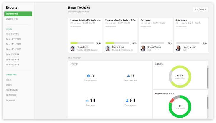 Hỗ trợ báo cáo tiến độ mục tiêu theo từng chu kỳ
